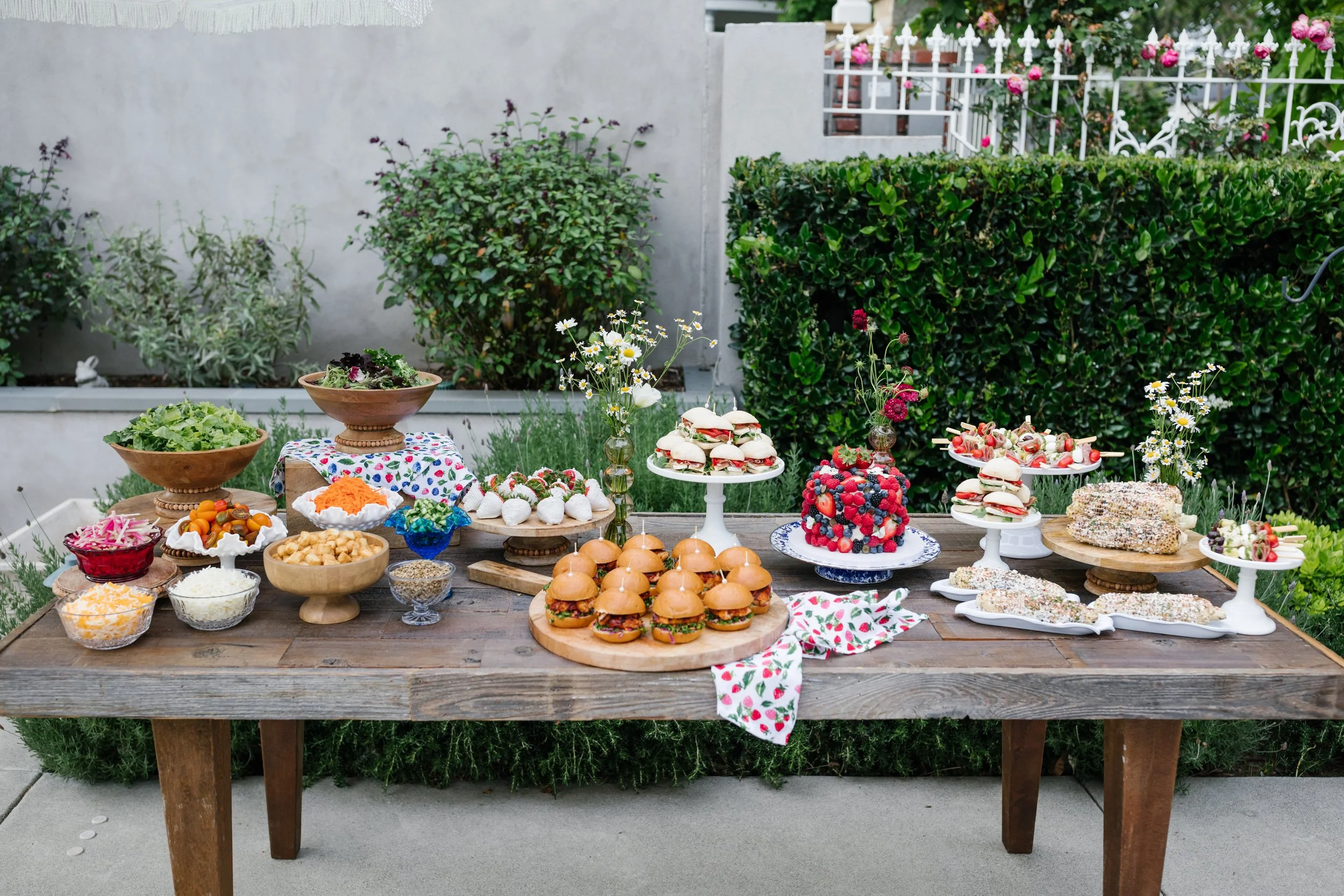 BBQ • Wedding • Breakfast + Brunch • Burger Bar • Corporate • Desserts • Grazing Table • Kid's Party • Plated Dinner • Taco Bar • Tea Party •